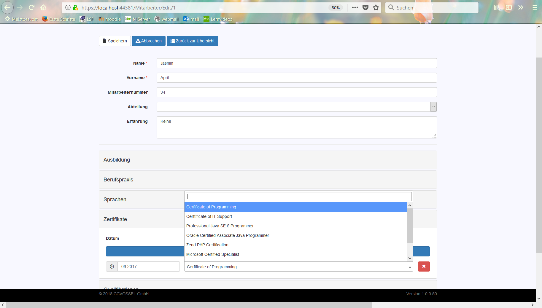 Es soll eine Webanwendung erstellt werden, in welche die Mitarbeiter des Unternehmens ihre Fähigkeiten und Fertigkeiten,